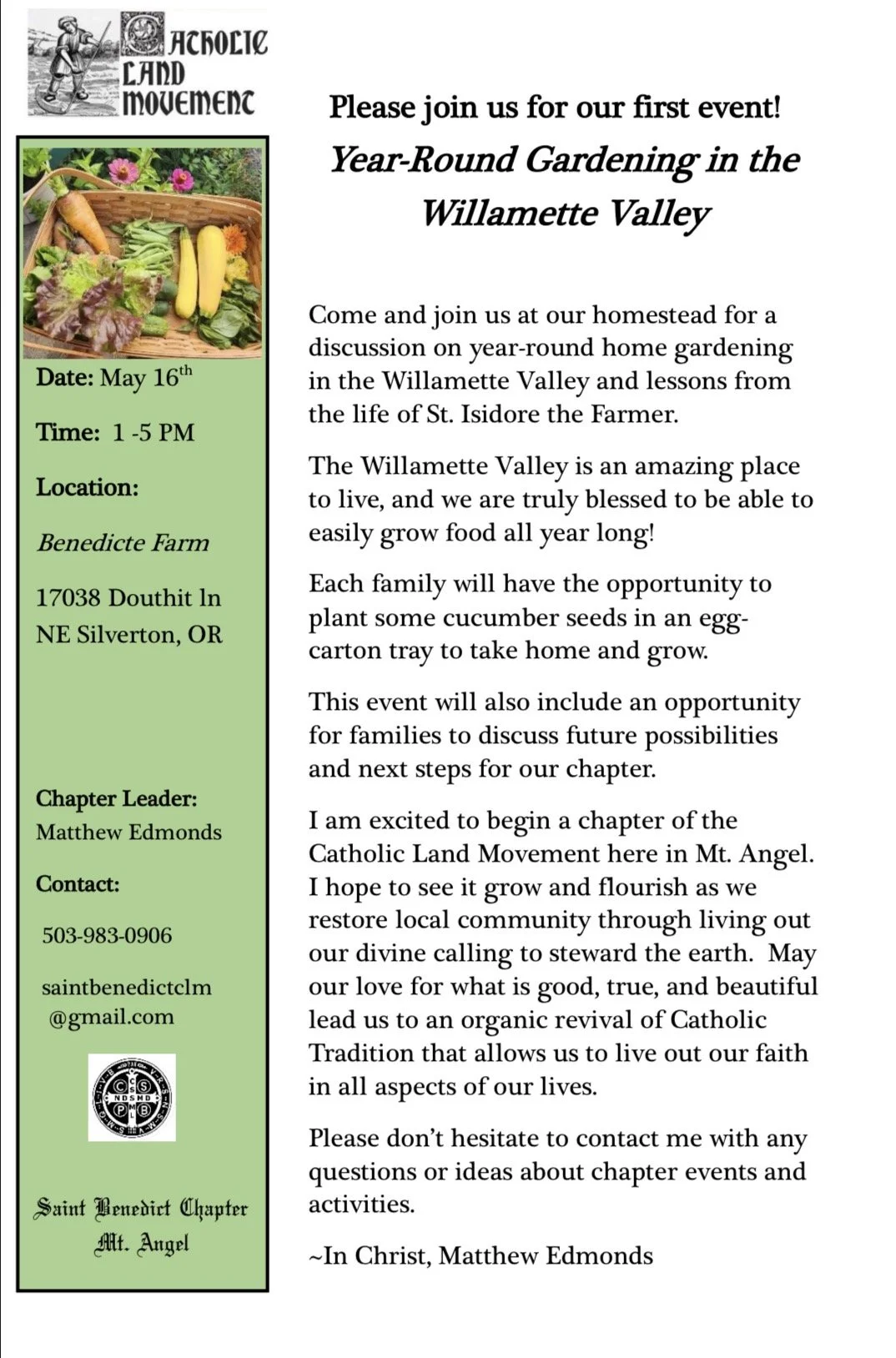 Back to All Events Year round gardening Willamette Valley Saturday, May 16, 2026 1:00 PM 5:00 PM Google Calendar ICS